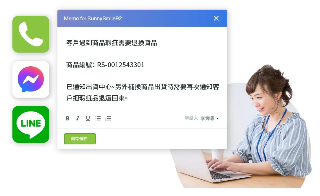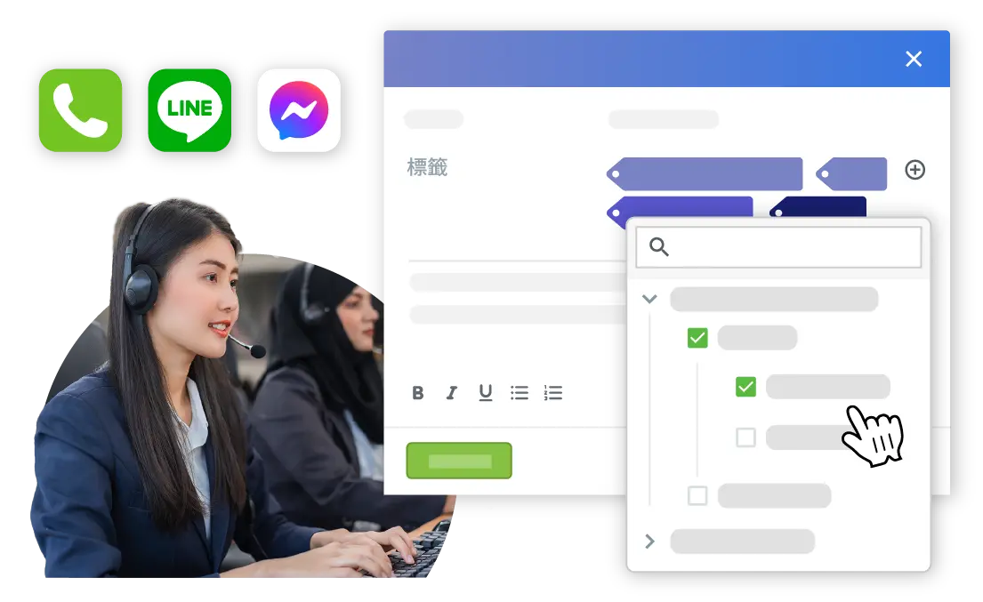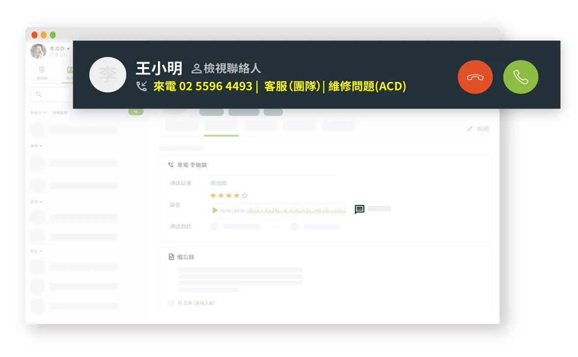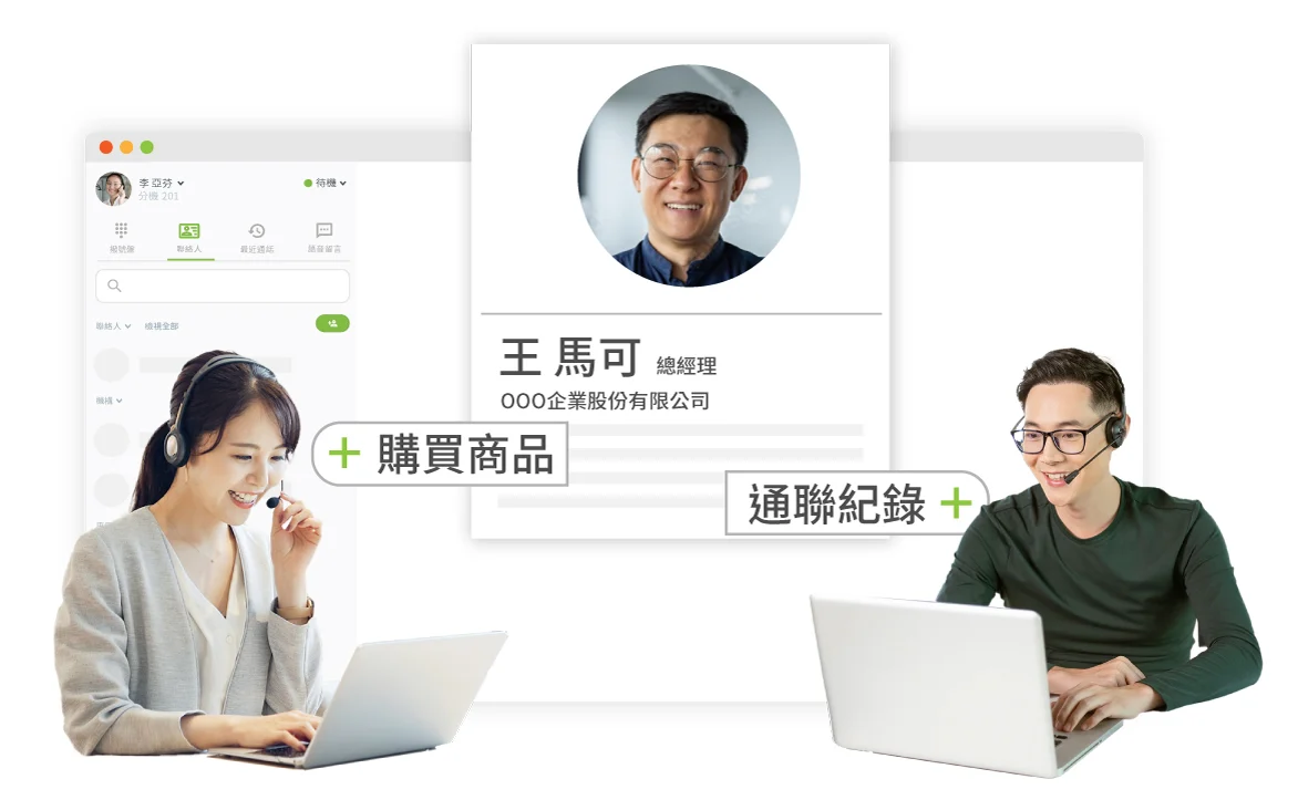 無論在哪裡工作,都能立即判別來聯繫的客戶、記錄每一通來電、每一個社群訊息,並輕易地組織與管控工作流程