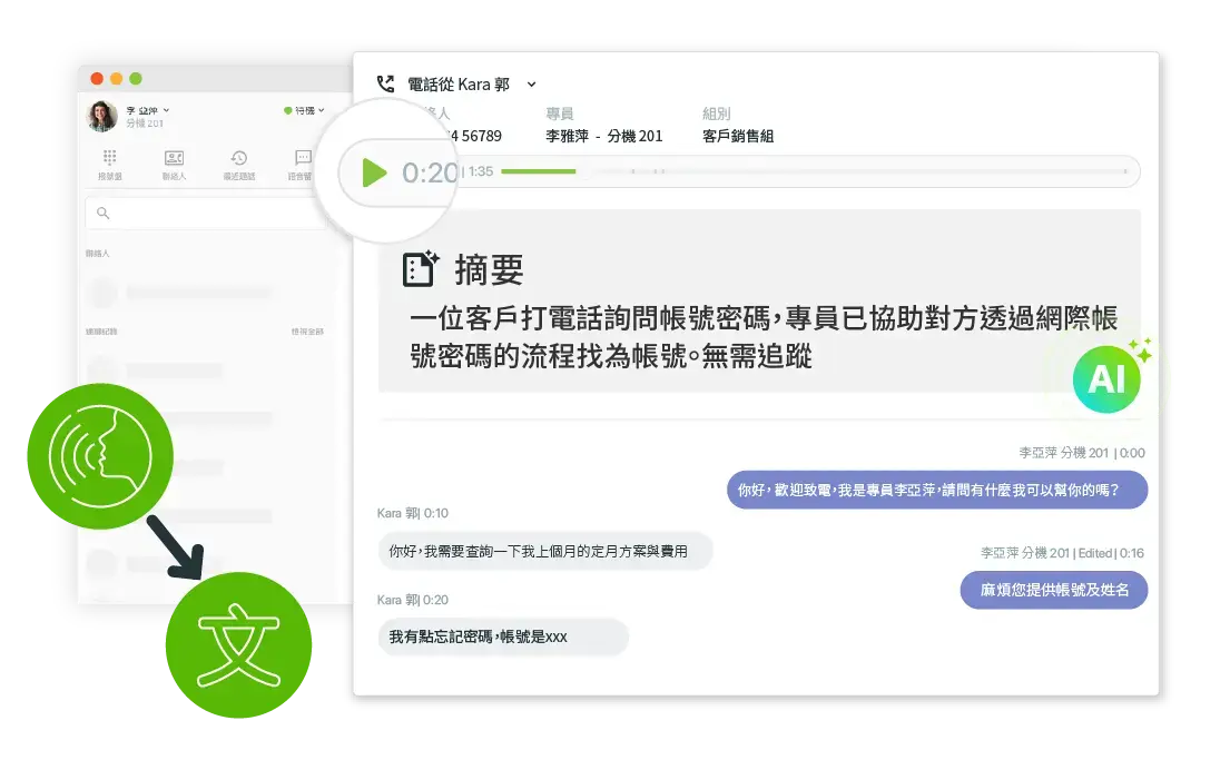 快速調閱客戶聯繫資訊、購買和通話紀錄,讓客服專員能提供個人化的服務並及時解決客戶當下的問題。