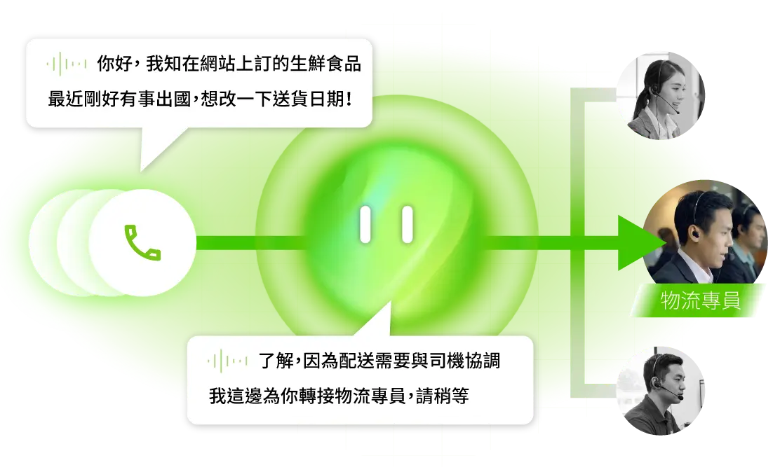 透過 AI Voicebot,系統能精準識別意圖,自動回覆 90% 的常見問題,搭配 AI IVR 智慧分流,將複雜需求轉接至合適專員,讓團隊專注於處理更高價值的服務。