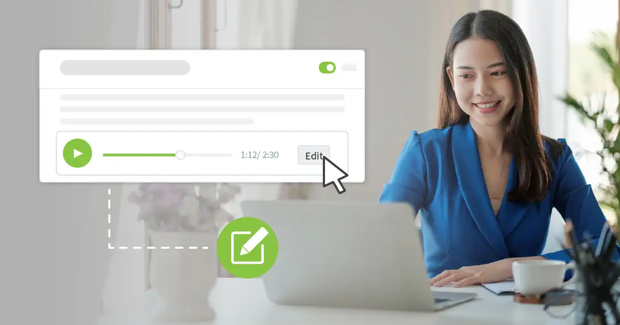 自動將語音轉成文字,並透過 AI 生成對話重點與摘要,縮短客服記錄時間,提升工作效率。