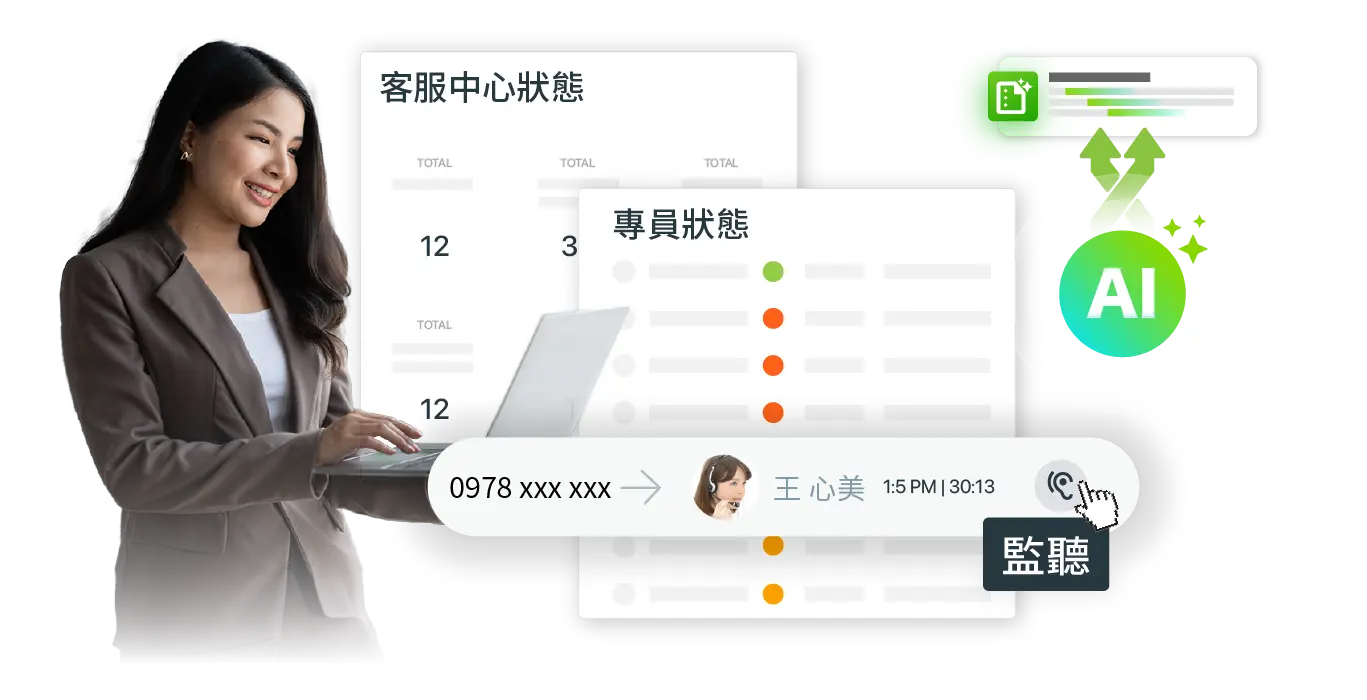 彈性設定互動式語音應答 (IVR) 與來電分配,搭配可視化儀表板,持續優化各營運節點。